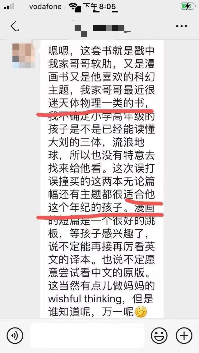 在之前的团购里我们已经团过大刘的三体、流浪地球等,但坦白说,大刘的“巨作”让孩子们自己看起来还是很费力烧脑的,但大刘的作品我们真心不想放过,我们的孩子作为华人的后代,我特别希望他们也能为咱们的科幻小说着迷并骄傲,。